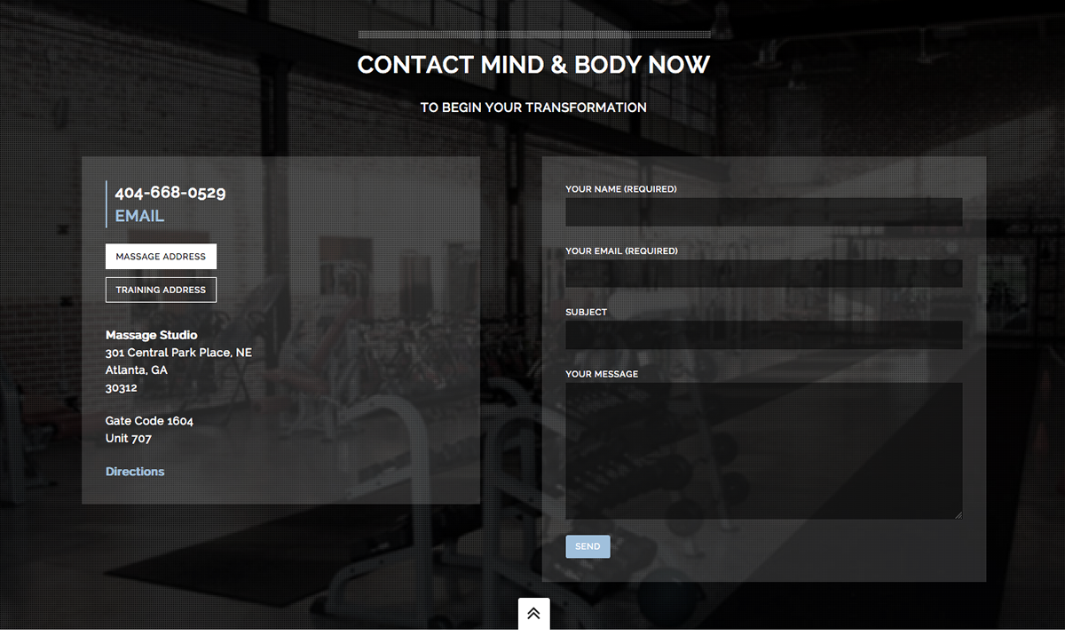 Website for a personal trainer and massage therapist, Kevin White. The photoshoot was located at the Goat Farm in Atlanta, Ga and Ash Gardner was the photographer.