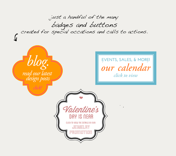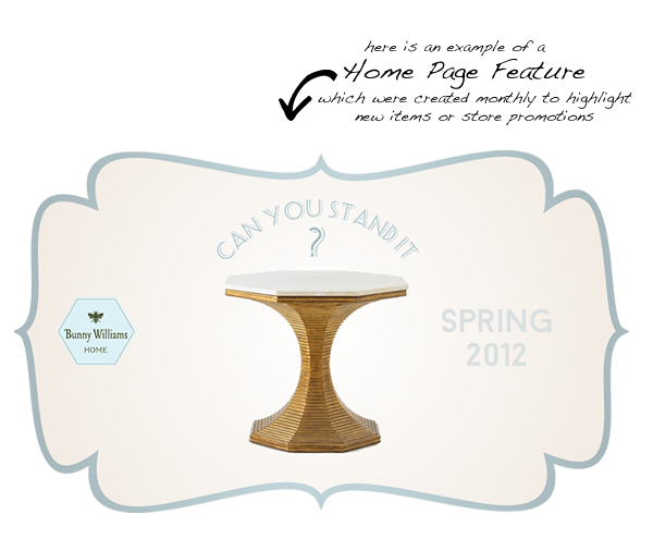 Online design elements created monthly to freshen up the site's visual assets to featuring the latest sales and announcements, while still fiting within the site's framework.