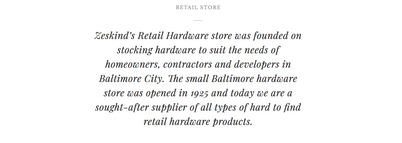 Zeskinds is a family owned retail hardware store and millwork shop specializing in custom door.